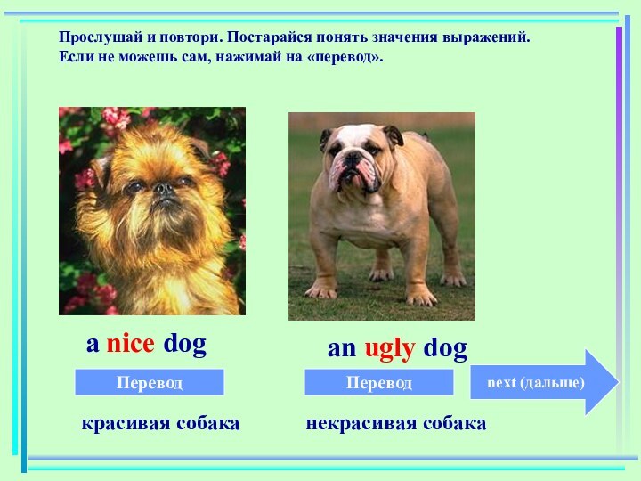 a nice dogan ugly dogПрослушай и повтори. Постарайся понять значения выражений.Если
