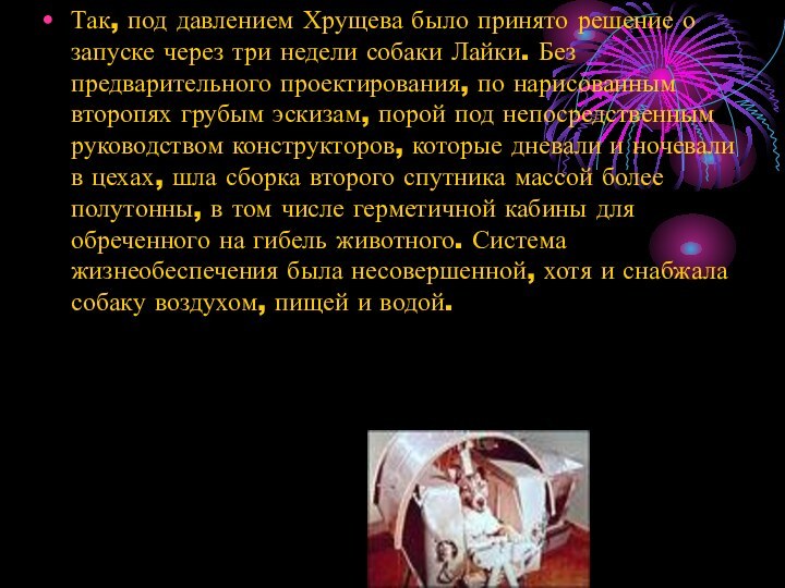 на советском корабле Спутник-5, прототипе космического корабля Восток, и