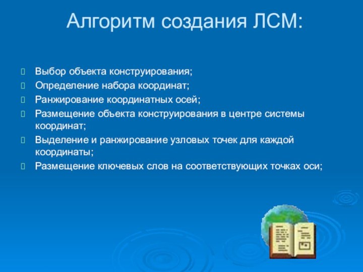 узловых точек для каждой координаты; Размещение ключевых слов на соответствующих точках оси;