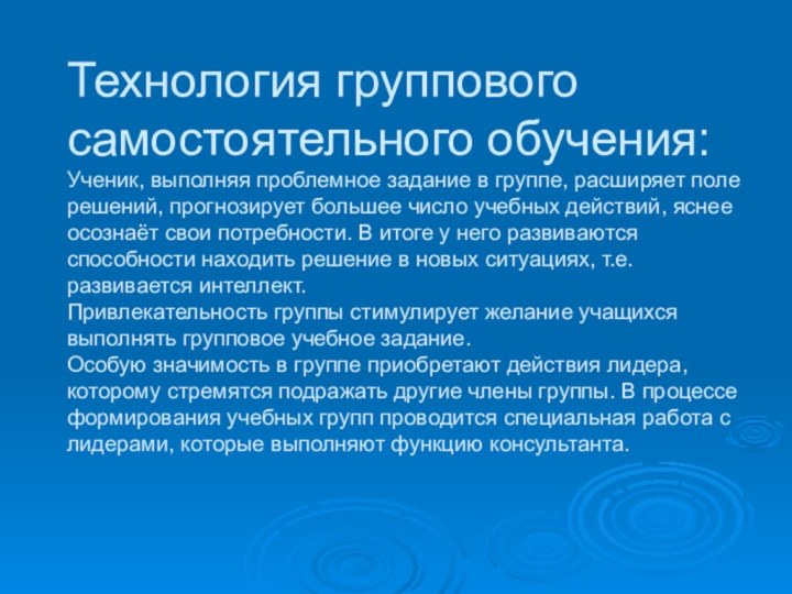 группе, расширяет поле решений, прогнозирует большее число учебных действий,