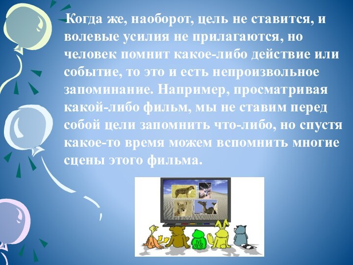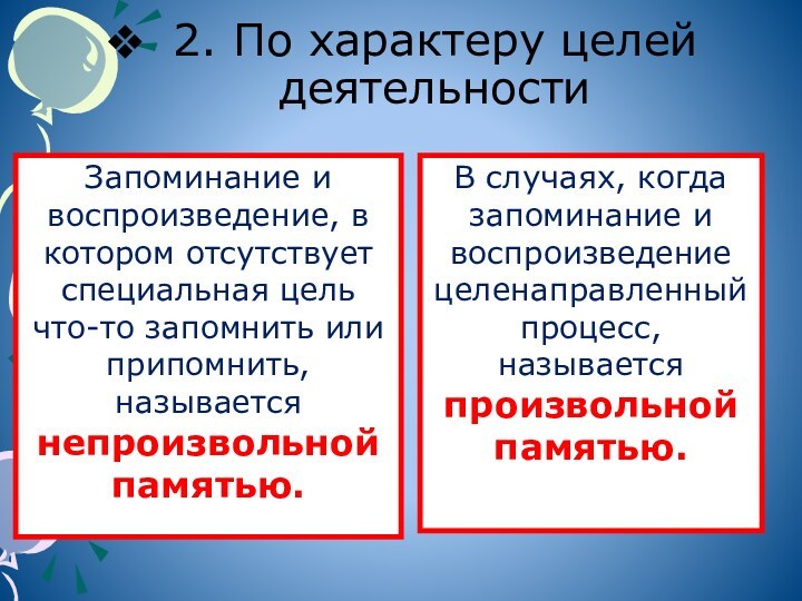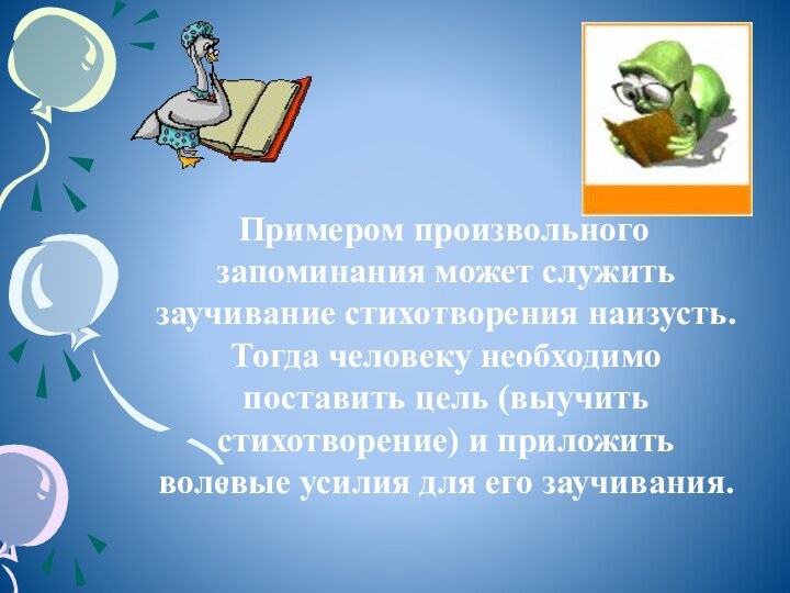 В случаях, когда запоминание и воспроизведение целенаправленный процесс, называется произвольной памятью.