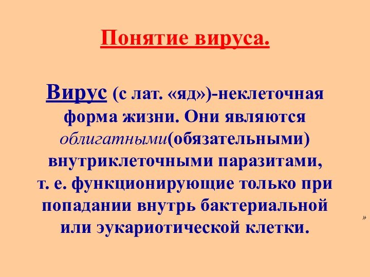 » Понятие вируса. Вирус (с лат. «яд»)-неклеточная форма жизни. Они являются