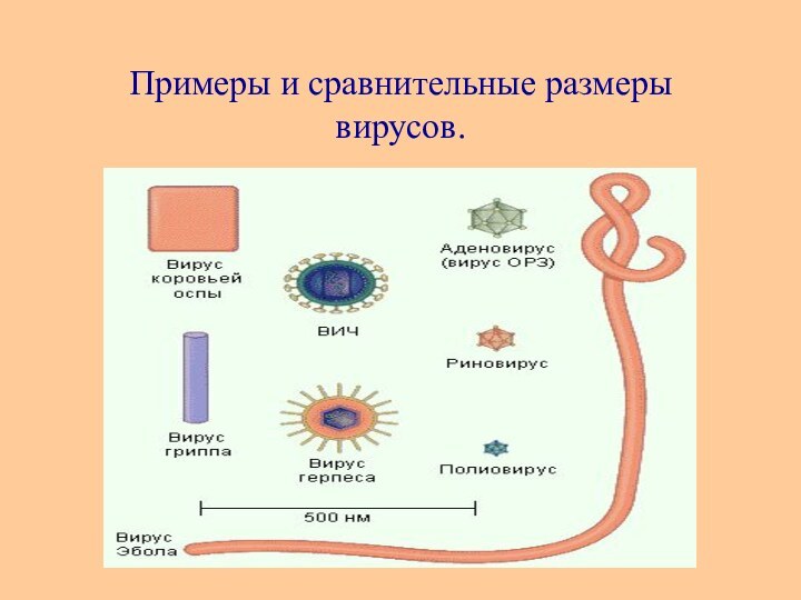 Слайд 12 Примеры и сравнительные размеры вирусов.