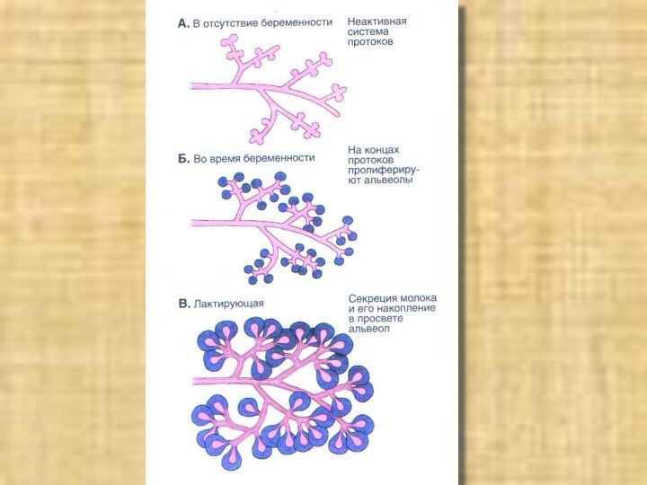 В таком состоянии железа остается до наступления беременности, во время которой на стенке альвеолярных ходов появляются концевые отделы.