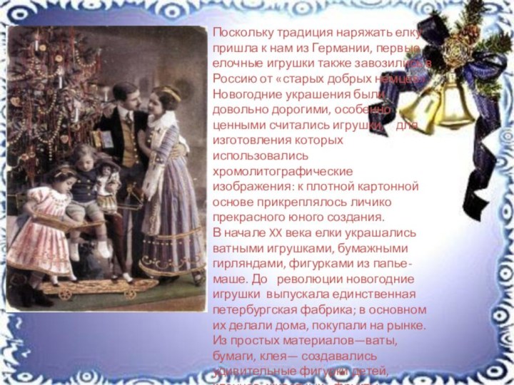 Германии, первые елочные игрушки также завозились в Россию от