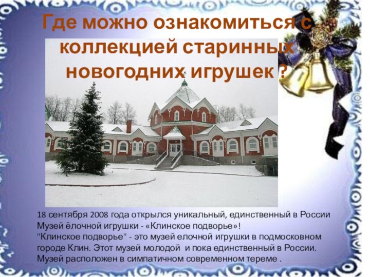 России Музей ёлочной игрушки - «Клинское подворье»!