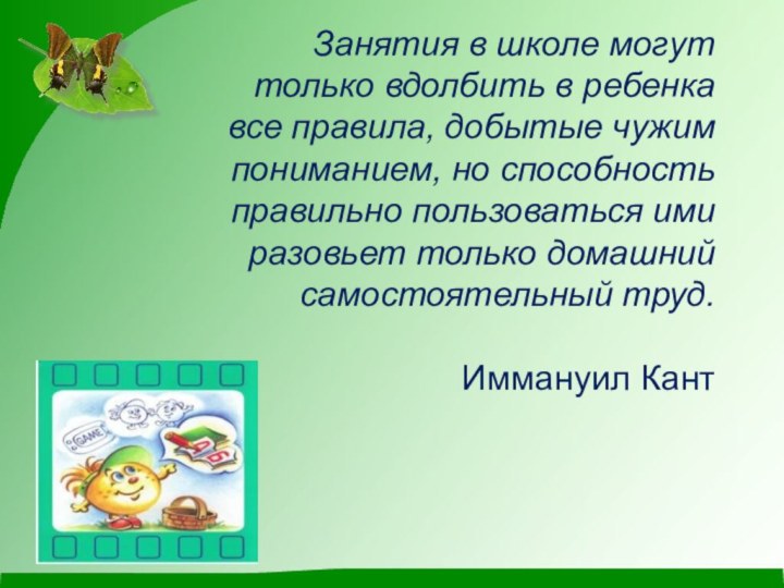 Слайд 2 Занятия в школе могут только вдолбить в ребенка