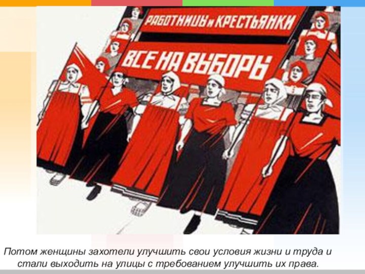 Слайд 7 Потом женщины захотели улучшить свои условия жизни и