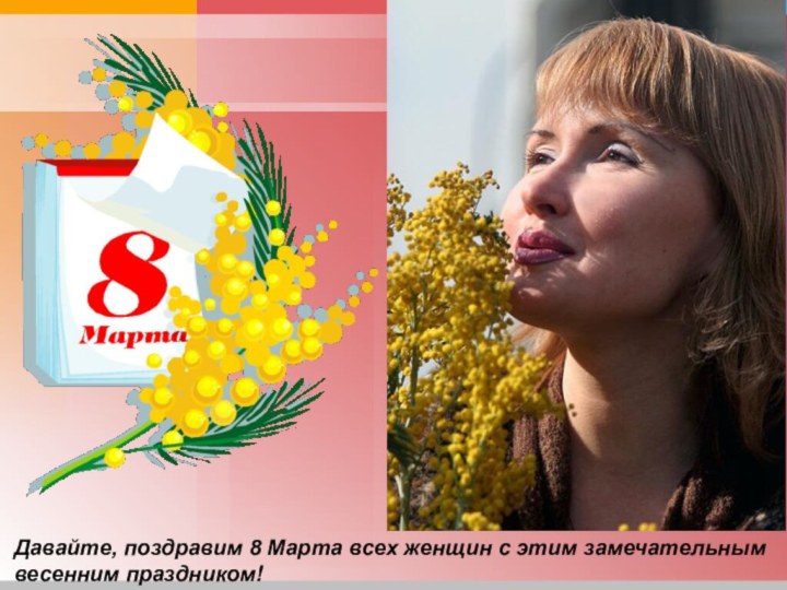 Слайд 19 Давайте, поздравим 8 Марта всех женщин с этим