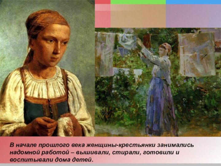 Слайд 5 В начале прошлого века женщины-крестьянки занимались надомной работой