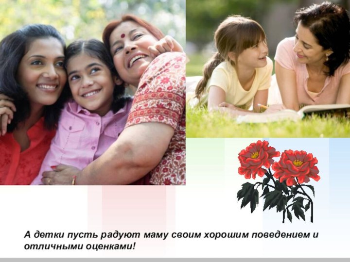 А детки пусть радуют маму своим хорошим поведением и отличными оценками!