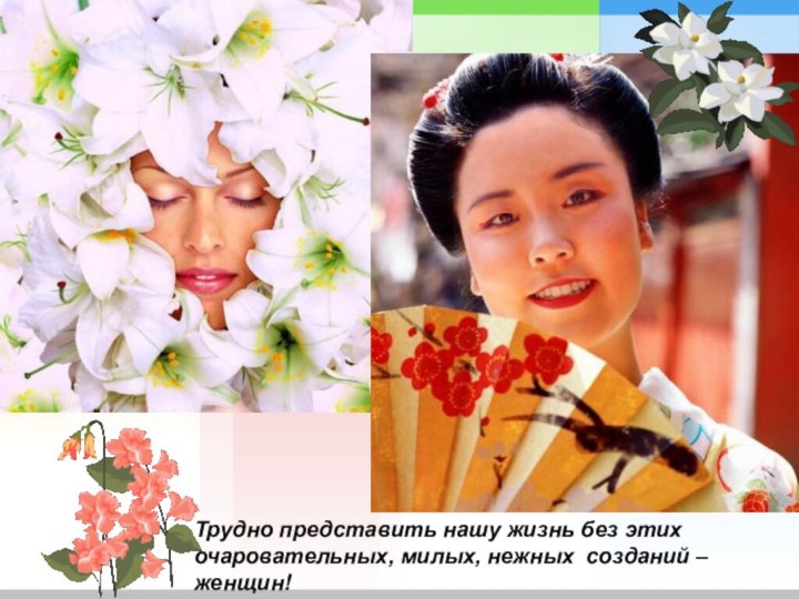 Трудно представить нашу жизнь без этих очаровательных, милых, нежных созданий – женщин!