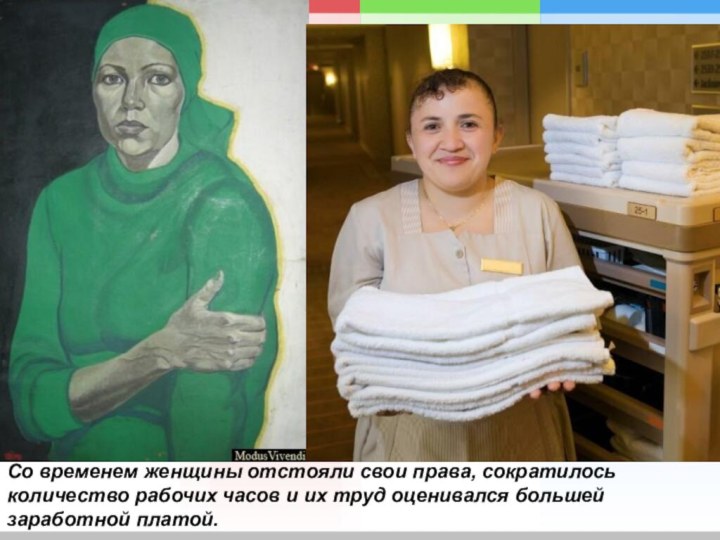 Со временем женщины отстояли свои права, сократилось количество рабочих часов и