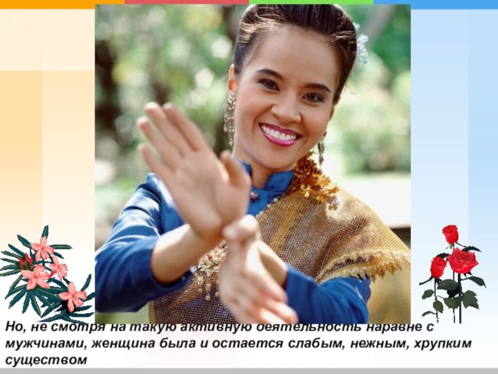 Но, не смотря на такую активную деятельность наравне с мужчинами, женщина