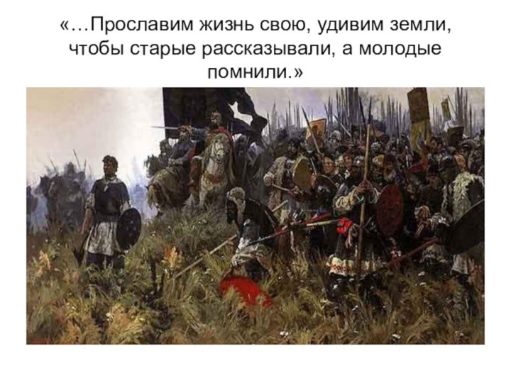 Слайд 5 «…Прославим жизнь свою, удивим земли, чтобы старые рассказывали,
