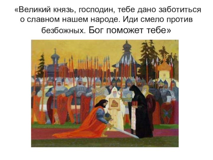 «Великий князь, господин, тебе дано заботиться о славном нашем народе. Иди