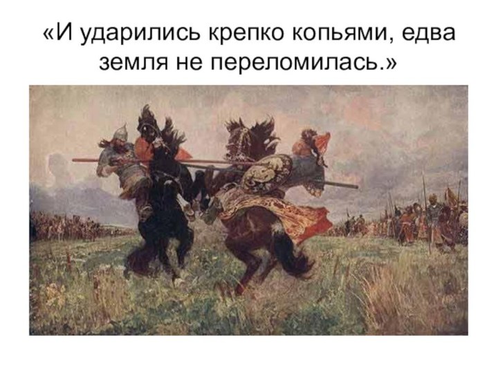 Слайд 7 «И ударились крепко копьями, едва земля не переломилась.»