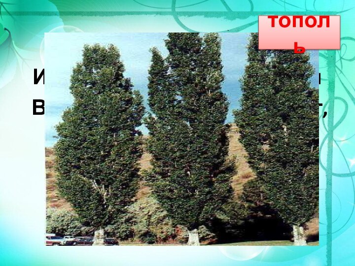 Угадай, кто Я?Носова Ольга Михайловнаучитель начальных классов МОУ СОШ № 11 Курского деревоНам в дождь и зной Поможет друг, Зеленый и хороший – Протянет У меня длинней иголки, Чем у елки. Очень прямо я расту В Я из крошки-бочки вылез, Корешки пустил и вырос, Стал высок я и Клейкие почки, Зеленые листочки. С белой корой Стоит под горой. береза Из деревьев ранним летом Вдруг снежинки запорхают, Но не радует нас это Кудри в речку опустила И о чём-то загрустила, А о чём грустит, никому не говорит. ива рябинаВесной зеленела, летом загорела, Осень в сад пришла, красный факел зажгла. Дом со всех сторон открыт, Он резною крышей крыт. Заходи в зелёный Источникиhttp://www.davey.com/elements/skin/home_tree.png деревоhttp://svyatorus.com/uploads/posts/2012-11/1352811194_60.jpg соснаhttp://img696.imageshack.us/img696/6752/dube.jpg дубhttp://s15.radikal.ru/i188/1012/63/9fd855b8f28f.jpg березаhttp://www.tunnel.ru/i/997/1369518419800552.jpeg топольhttp://www.stihi.ru/pics/2012/10/29/4942.jpg иваhttp://www.neizvestniy-geniy.ru/images/works/photo/1/small/91005_1.jpg рябинаhttp://www.rn-omsk.ru/images/catalog/337259f85c4ccae57fd5952b1b5e3464_800x600.jpg лес