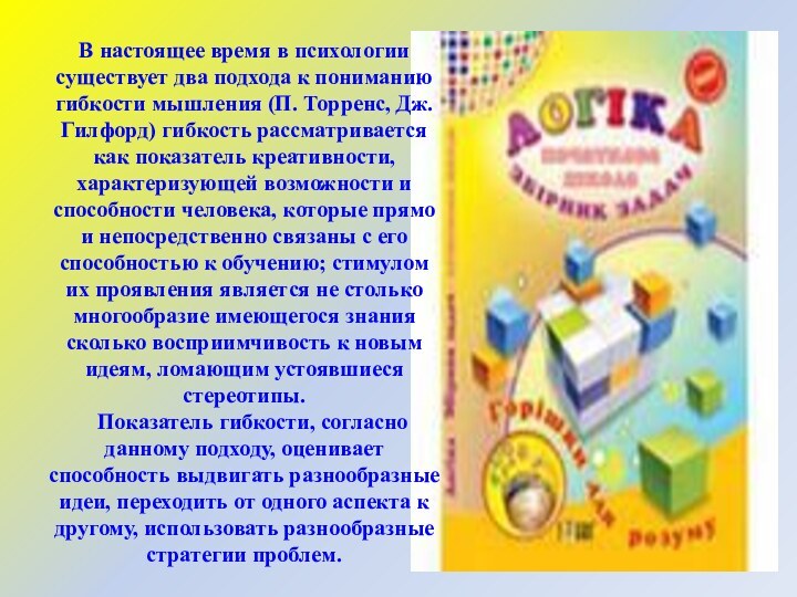 к пониманию гибкости мышления (П. Торренс, Дж.Гилфорд) гибкость рассматривается