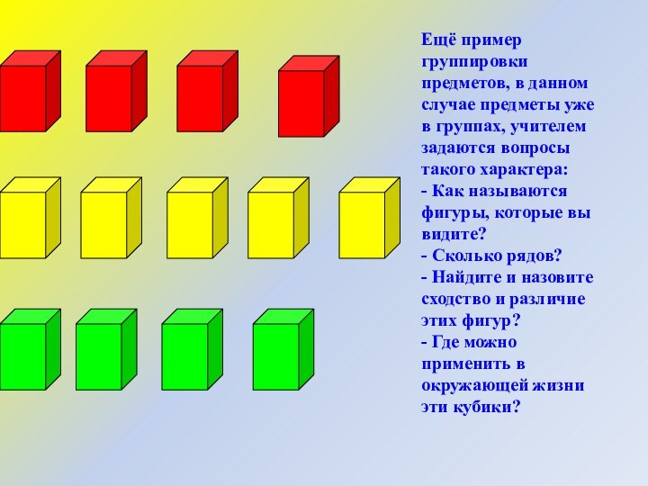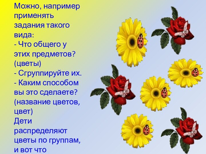 Сравнивать, группировать, классифицировать предметы по определённым признакам, делать правильные выводы.