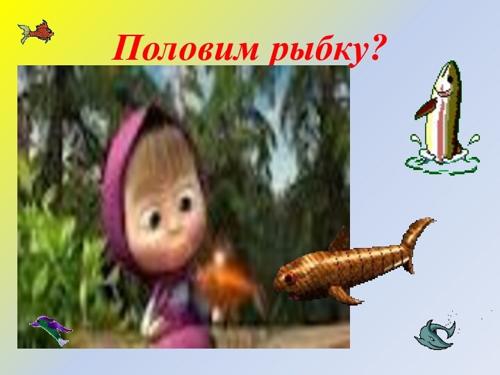 и предметы с изображением рыбок(бумажных), на которых написано задание,