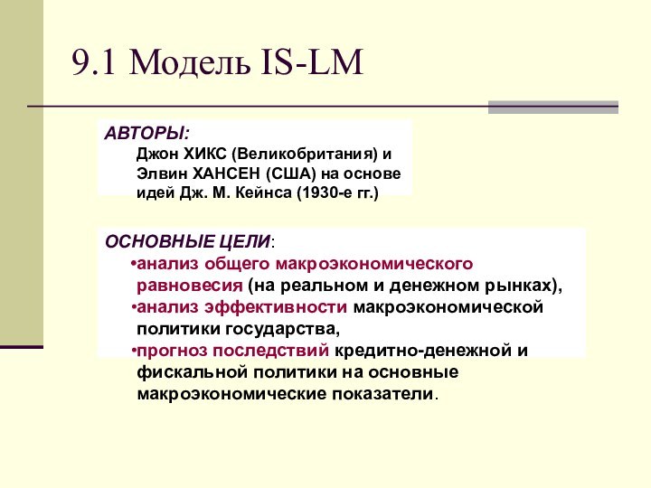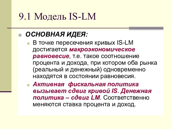 9.1 Модель IS-LM