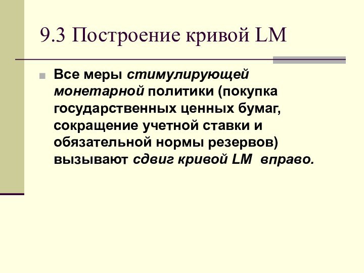 нормы резервов) вызывают сдвиг кривой LM вправо.