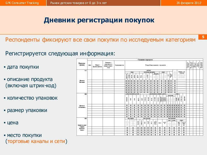Слайд 5 Респонденты фиксируют все свои покупки по исследуемым категориям