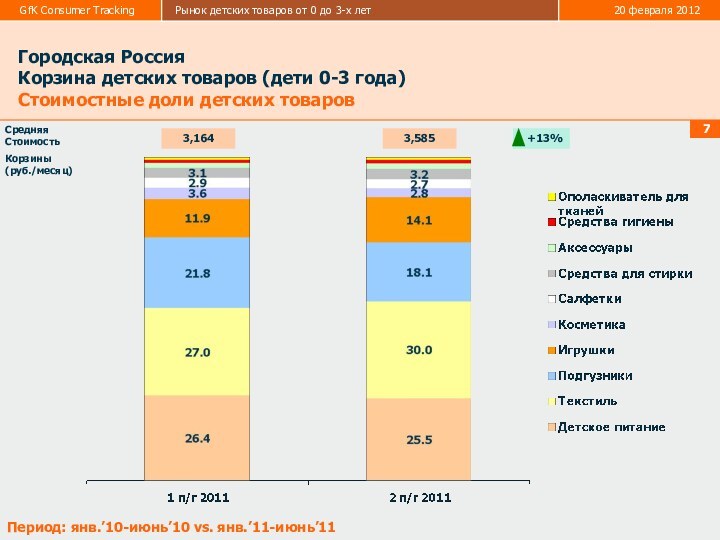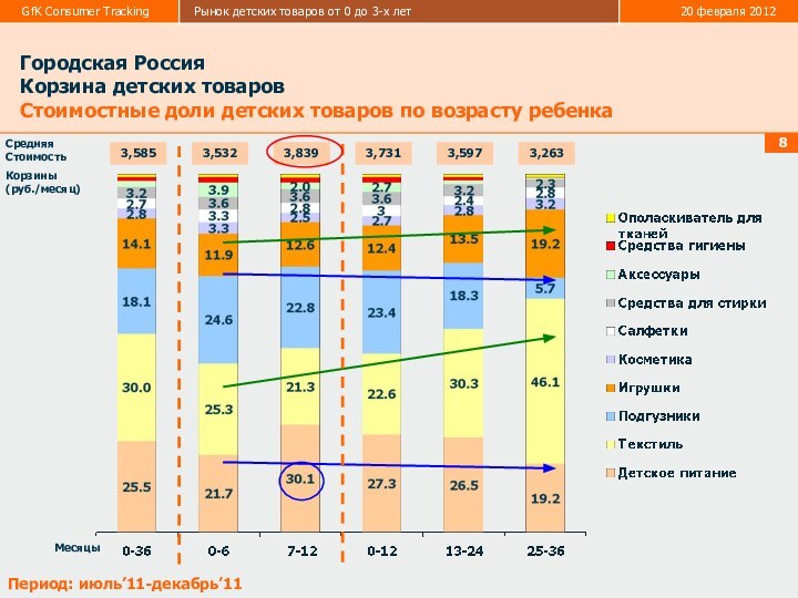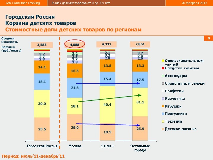 Средняя СтоимостьКорзины (руб./месяц) 3,585Период: июль’11-декабрь’11 Городская Россия Корзина детских товаров