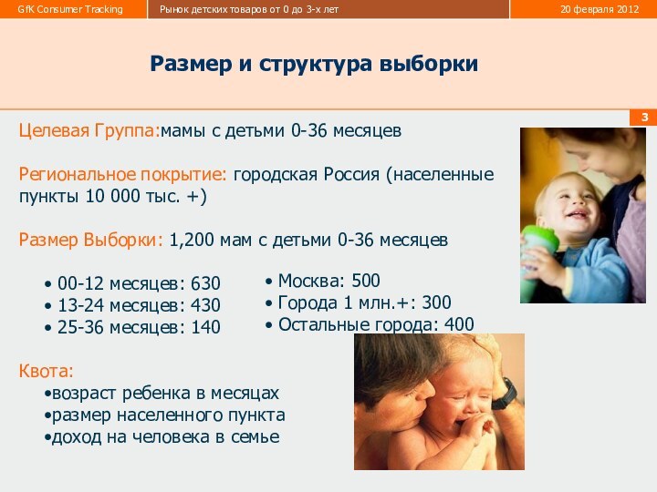 Размер и структура выборкиЦелевая Группа:мамы с детьми 0-36 месяцевРегиональное покрытие: городская