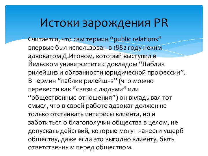 Истоки зарождения PR