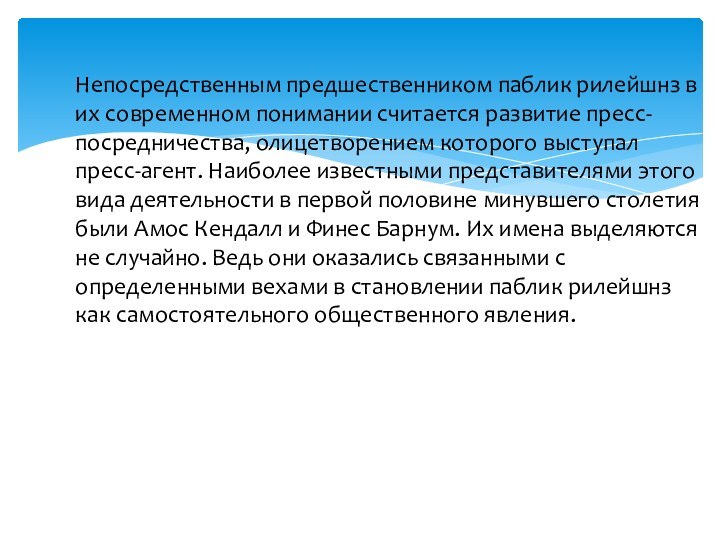 Непосредственным предшественником паблик рилейшнз в их современном понимании