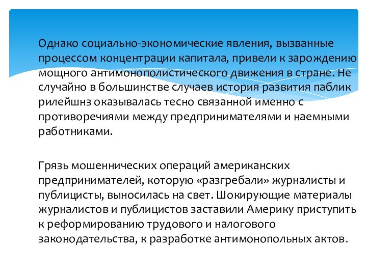 Однако социально-экономические явления, вызванные процессом концентрации капитала, привели