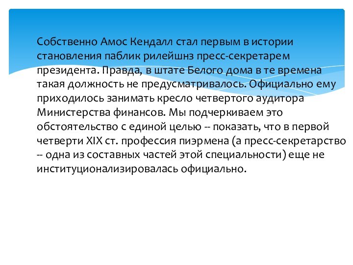 Собственно Амос Кендалл стал первым в истории становления