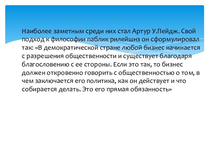 Наиболее заметным среди них стал Артур У.Пейдж. Свой