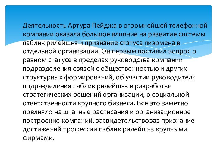 Деятельность Артура Пейджа в огромнейшей телефонной компании оказала