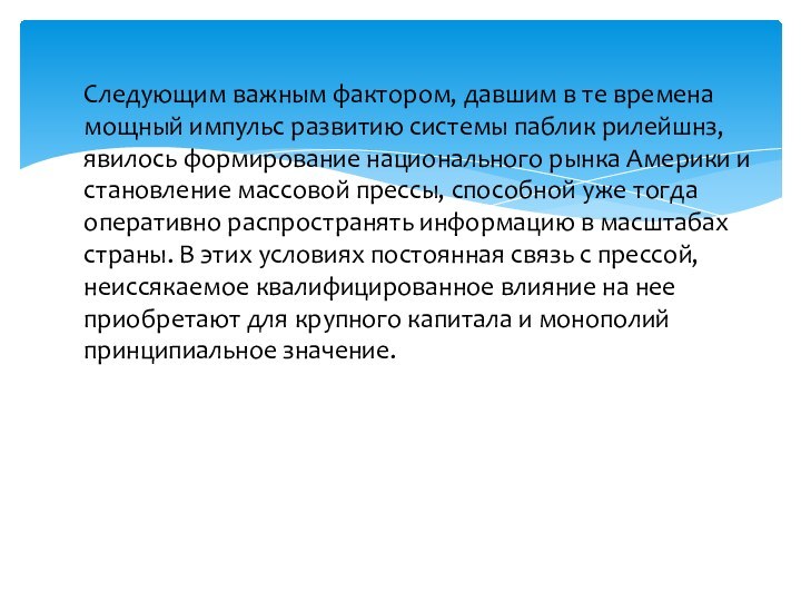 импульс развитию системы паблик рилейшнз, явилось формирование национального рынка