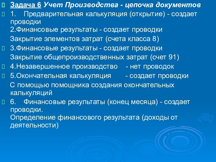 6. Финансовые результаты (конец месяца) - создает проводки.