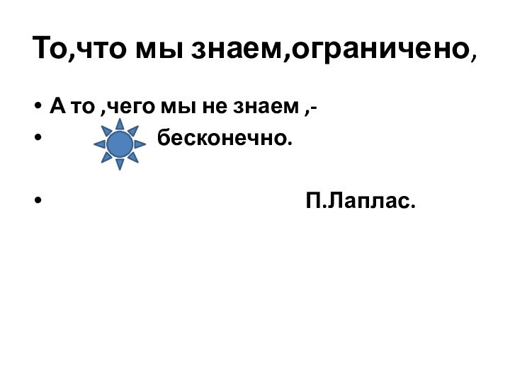 Слайд 3 То,что мы знаем,ограничено,