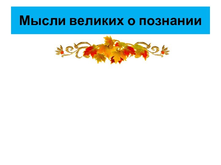 Слайд 2 Мысли великих о познании