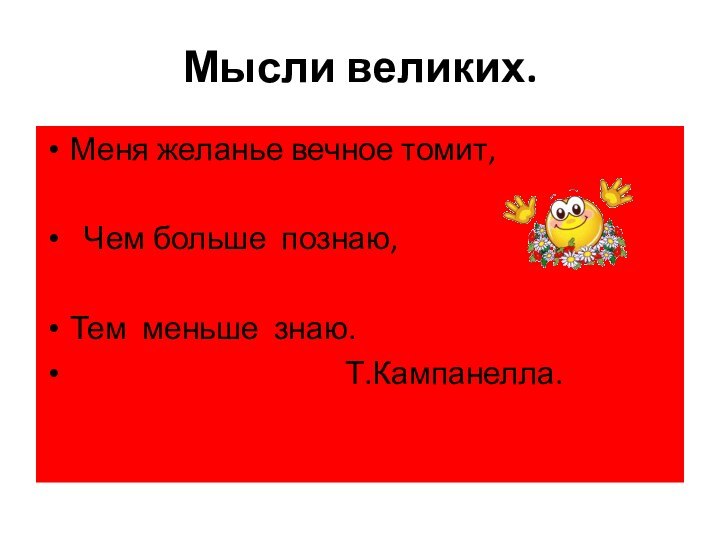 Мысли великих.Меня желанье вечное томит, Чем больше познаю,Тем меньше знаю.