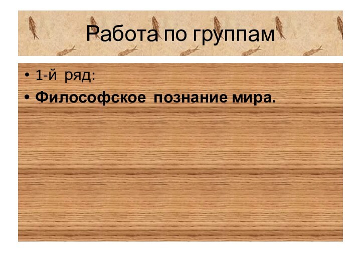 Работа по группам1-й ряд:Философское познание мира.