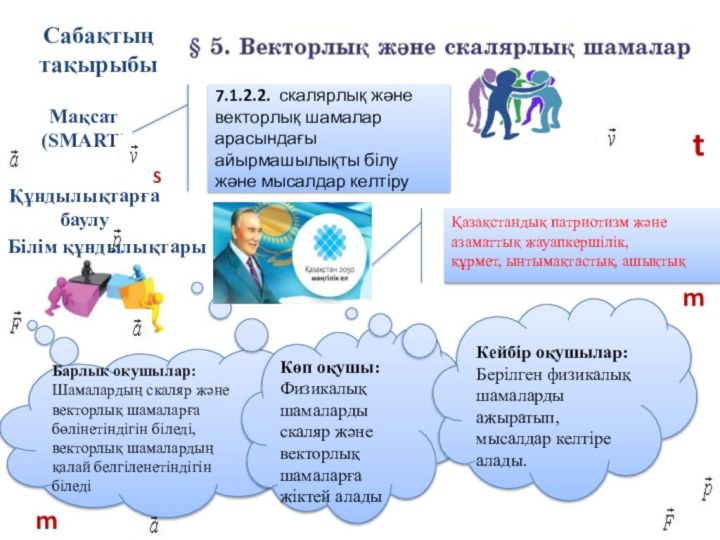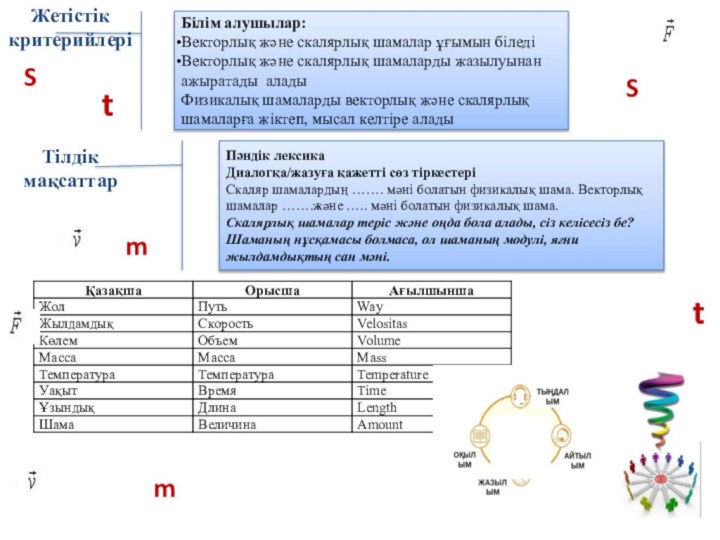 бөлінетіндігін біледі, векторлық шамалардың қалай белгіленетіндігін біледі