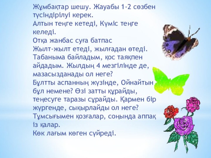 дамыту,пәнге қызығушылығын арттыру.Тәрбиелік:Оқушының ойлау қабілетін арттыра отырып ізденушілік,тәртіптілік,адамгершілік қабілеттерін қалыптастыру.