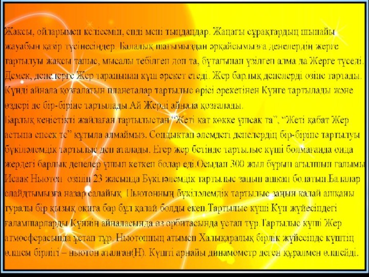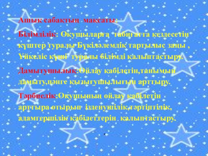 Бүкіләлемдік тартылыс заңы ,Үйкеліс күші туралы білімді қалыптастыру.