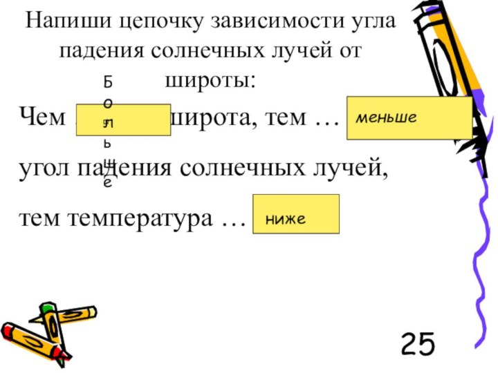 ниже