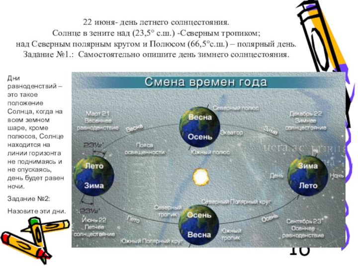 Дни равноденствий – это такое положение Солнца, когда на всем земном шаре, кроме полюсов, Солнце находится на линии горизонта не поднимаясь и не опускаясь, день будет равен ночи.