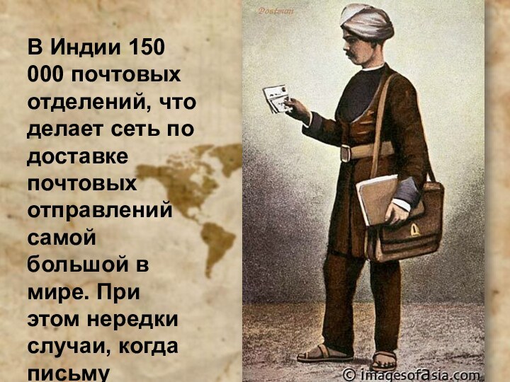 Слайд 16 В Индии 150 000 почтовых отделений, что делает