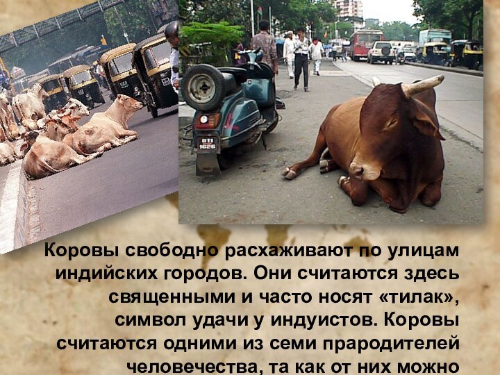 Слайд 21 Коровы свободно расхаживают по улицам индийских городов. Они