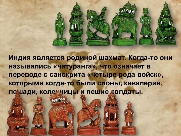 Слайд 15 Индия является родиной шахмат. Когда-то они назывались «чатуранга»,
